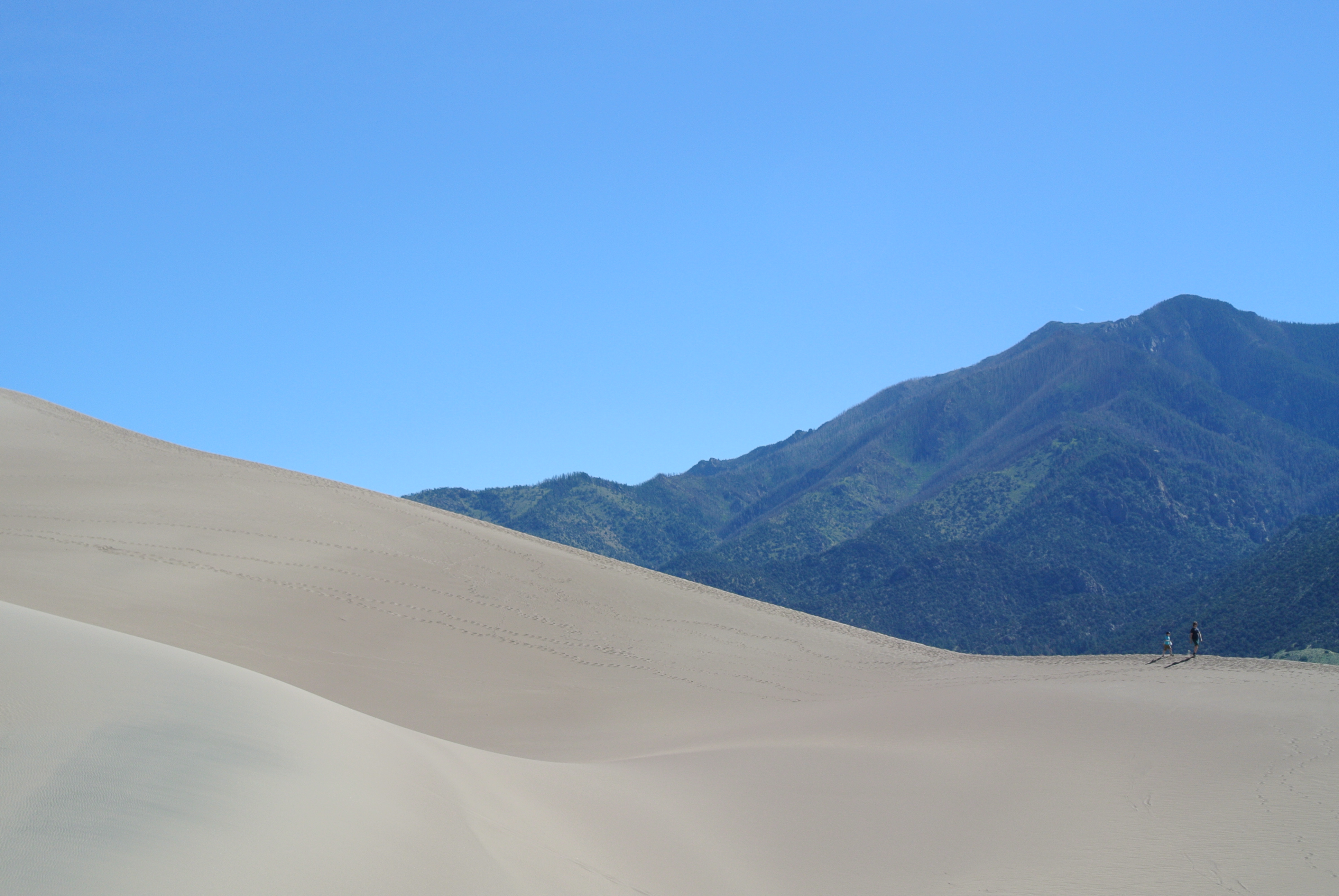 Driving from the north, you start to see the sand dunes from an hour away.  A tiny blob of tan at the base of a mountain range.  Is that? no.. that can’t be them.. It is.  It could’ve just been the route we took, but I felt a bit stranded in this area of Colorado.  I mean it’s not desolate.. but you may or may not have phone service and the nearest house is about a million miles away (give or take a mile).
